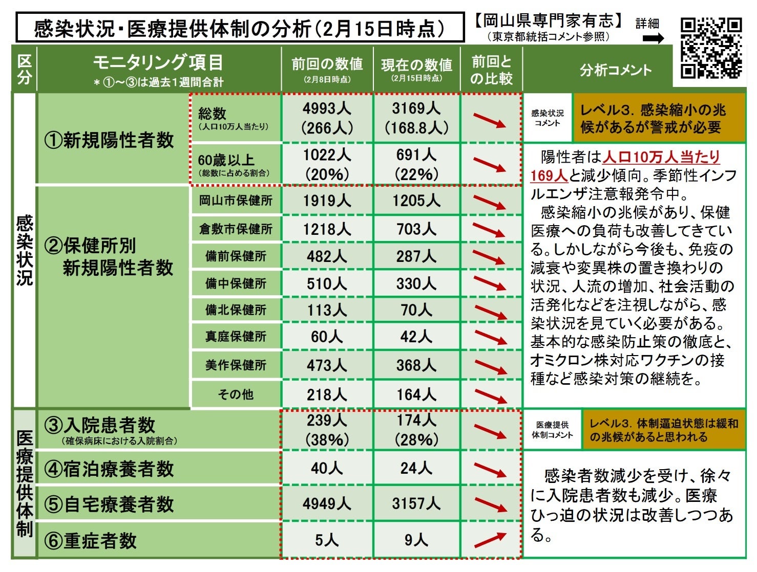 【岡山大学】岡山県内の感染状況・医療提供体制の分析について(2023年2月15日時点)