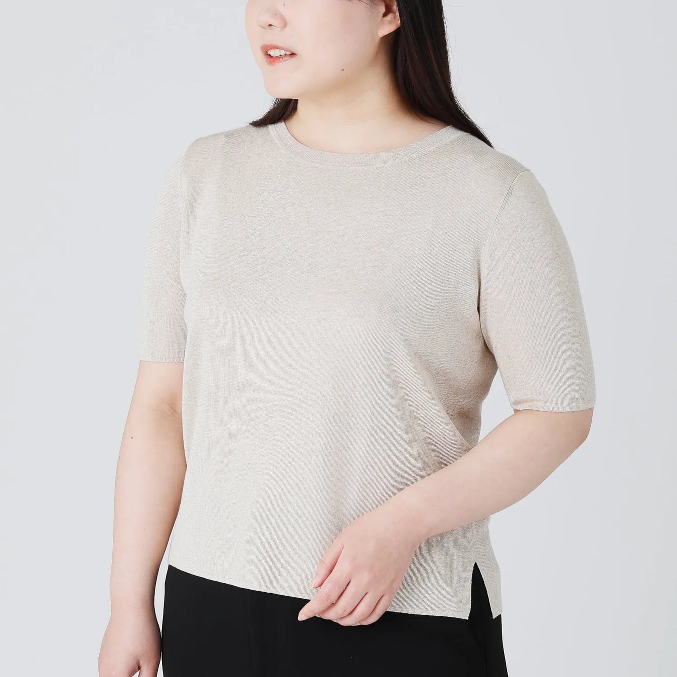 上品な光沢のあるイタリー糸を使用したニットプルオーバー。さらっとしたドライな質感で、汗ばむ季節も快適にお召しいただけます。長めの袖丈と程よく厚みの出る総針編みを採用し、身体のラインを拾いにくいのが嬉しいポイント。スタッフ着用のベージュはオンライン限定色です。着用サイズ:L13号