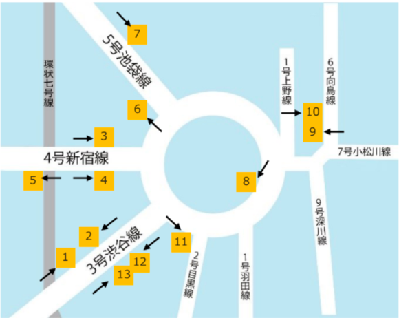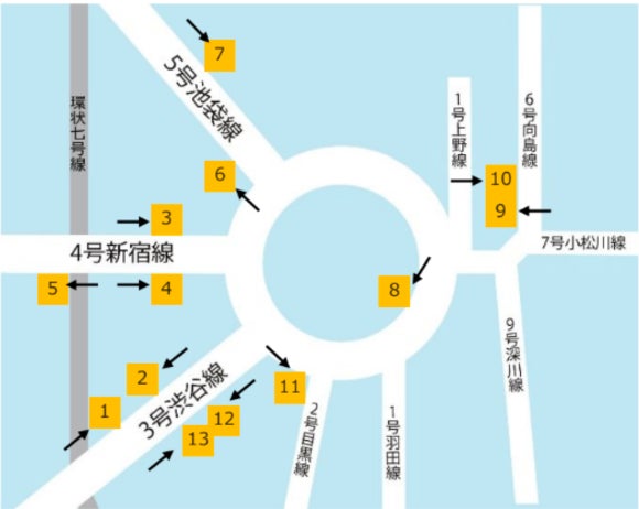 掲載される屋外の大型ビジョンの場所は以下の通りです。