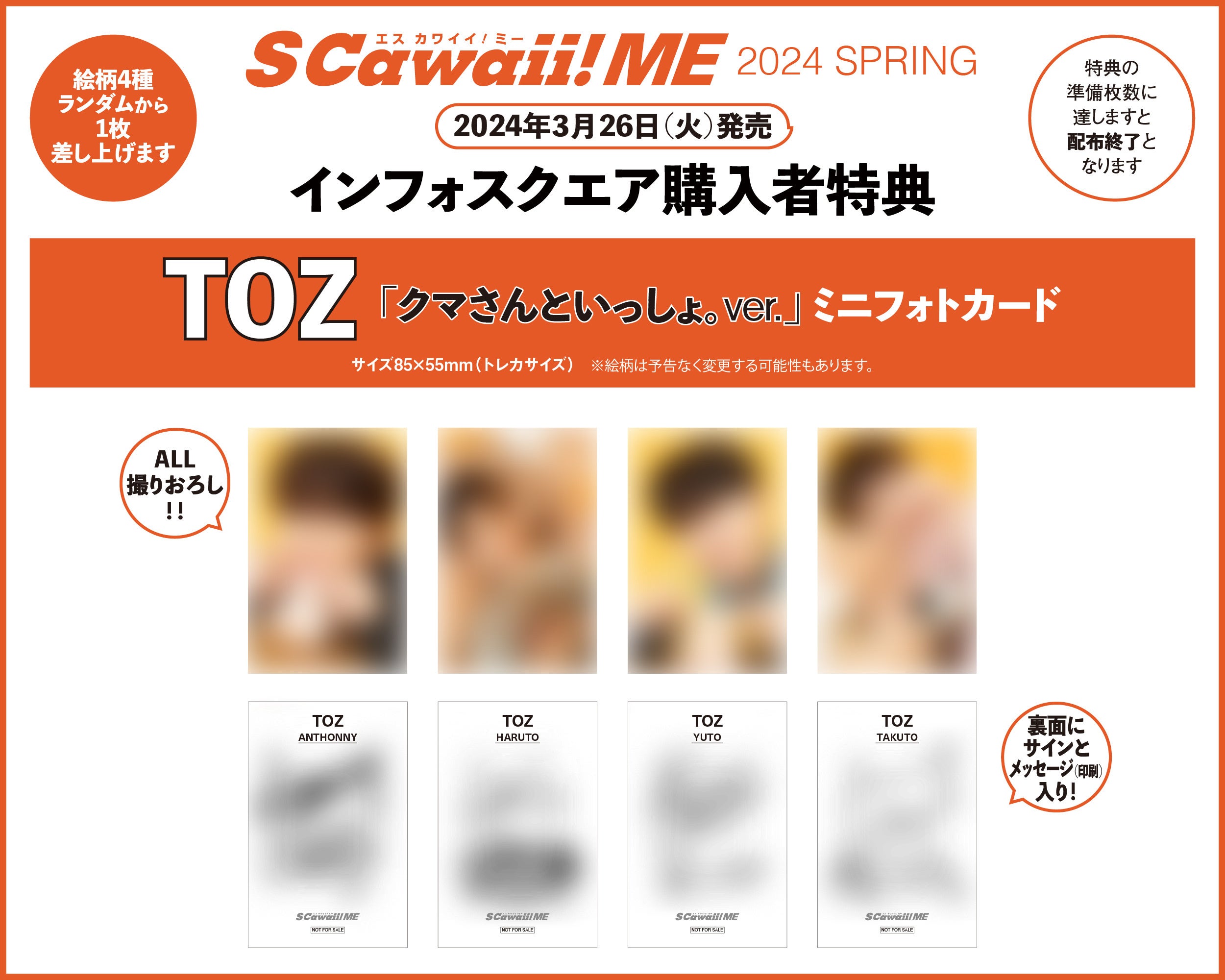 下記URLから『S Cawaii! ME 2024 SPRING』をお求めいただくと、TOZのミニフォトカードを4種からランダムで1枚差し上げます。