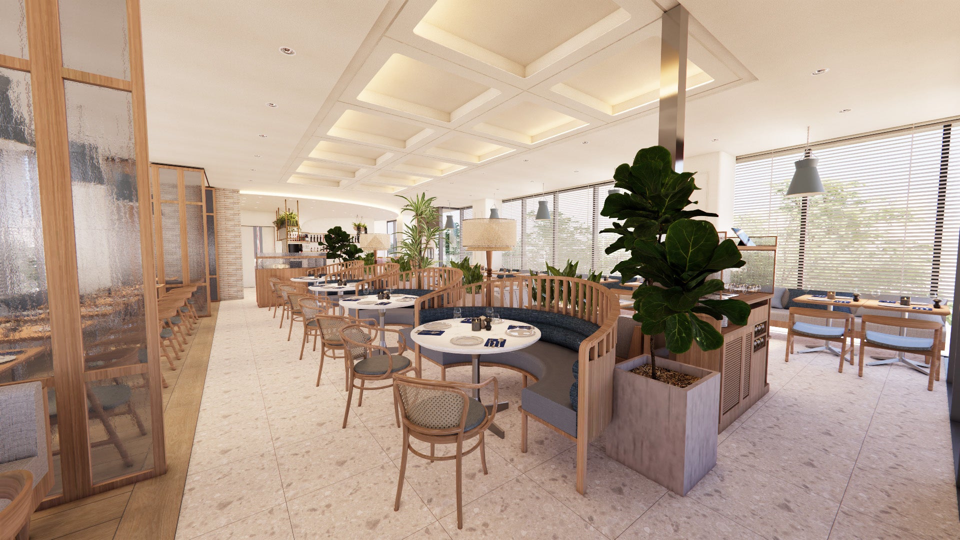 「URBAN CLASSIC COMFORT」をデザインコンセプトに、創業者サラベス・レヴィーンが紡いできた“料理の味わいと彩り”をより一層引き立てる空間を目指しました。包み込むような柔らかなフォルムとナチュラルな素材感を基調に、飽きのこない上質な設えへと整えています。