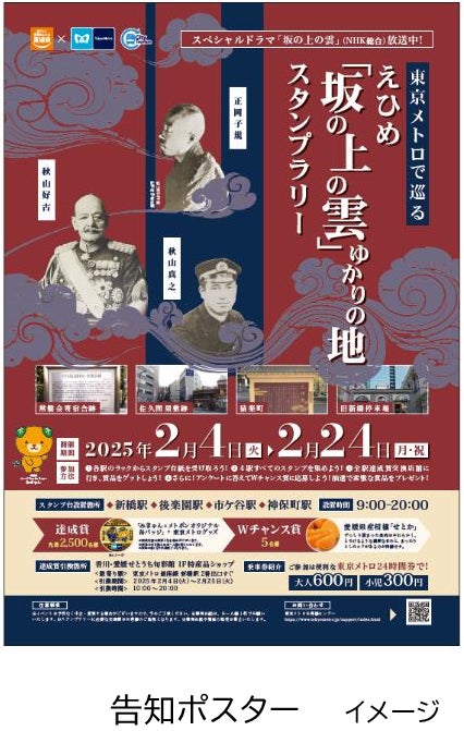 東京地下鉄株式会社(本社:東京都台東区、代表取締役社長:山村 明義、以下「東京メトロ」)と愛媛県は、東京メトロで巡る えひめ「坂の上の雲」ゆかりの地スタンプラリーを2025年2月4日(火)から2025年2月24日(月・祝)まで実施します。