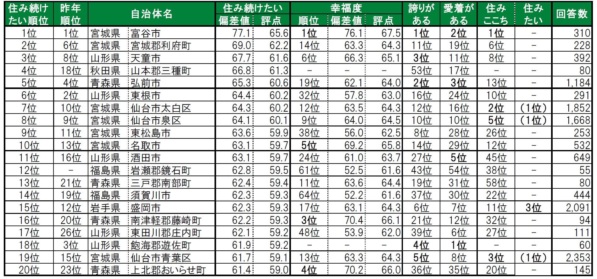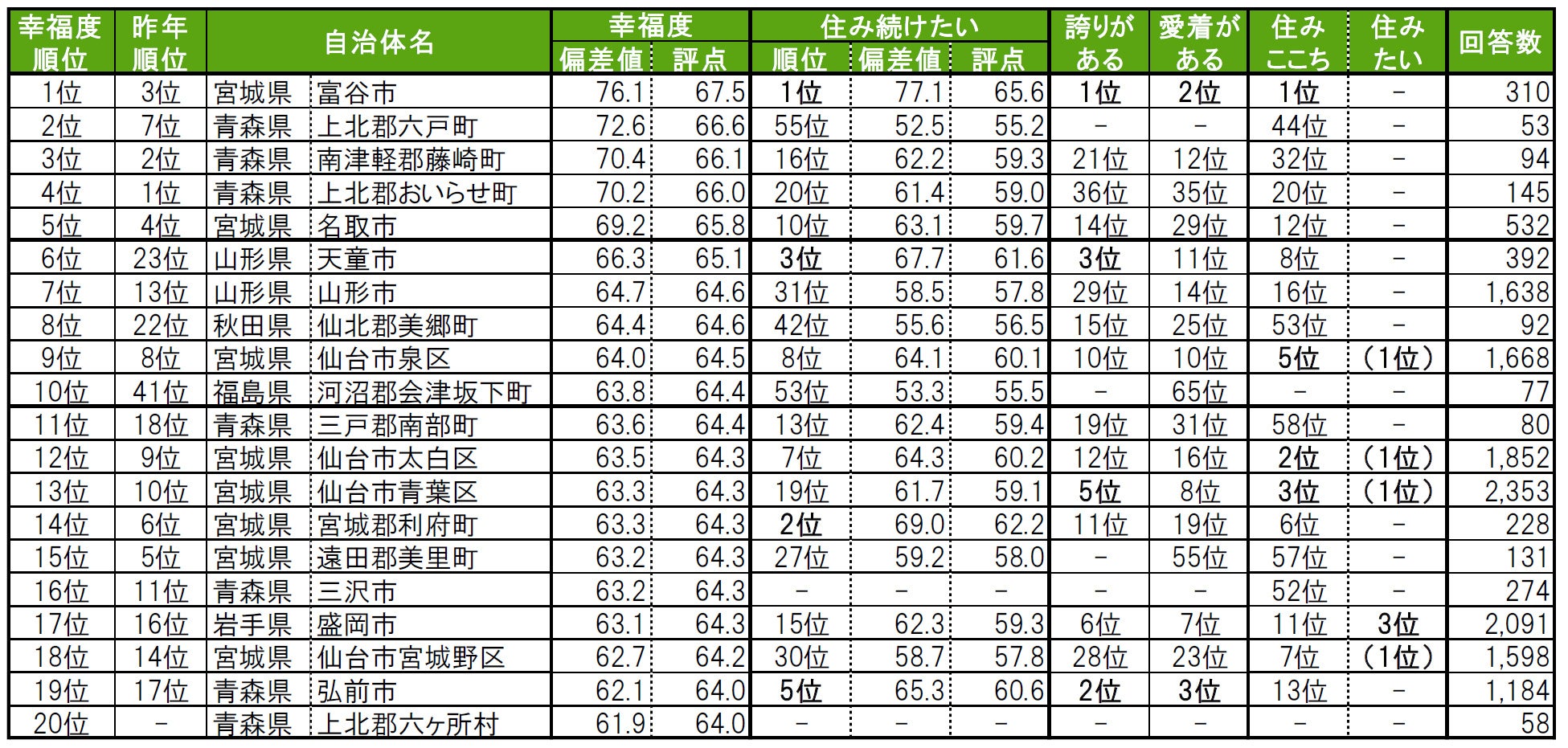 いい部屋ネット「街の幸福度 & 住み続けたい街ランキング2024<東北版>」(街の住みここちランキング特別集計)発表