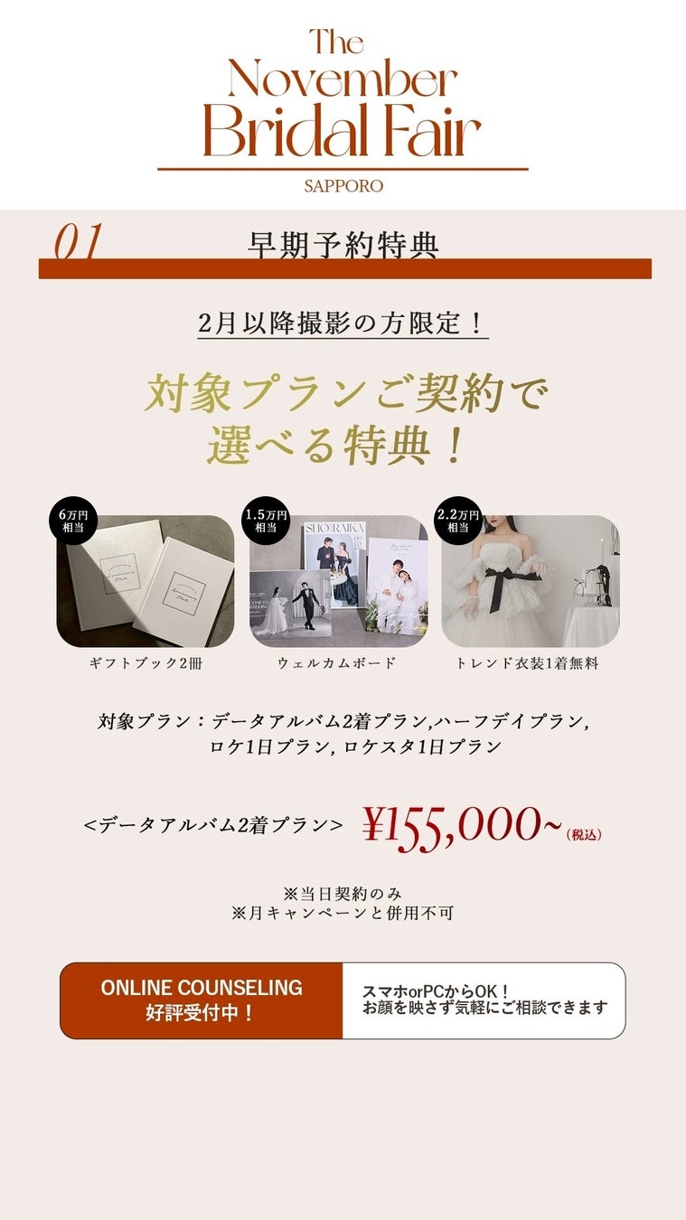 【aim札幌店】11月限定お得なブライダル・ソロキャンペーン, フェア情報!