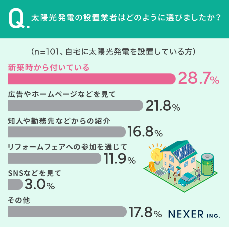 ■太陽光発電の設置業者選び、28.7%が「新築時から付いている」