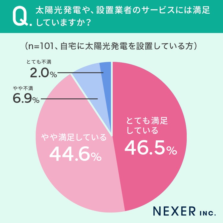 さらに、太陽光発電や設置業者のサービスには満足しているか聞いてみました。
