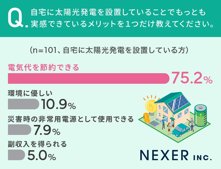 さらに、自宅に太陽光発電を設置していることでもっとも実感できているメリットを1つだけ聞いてみました。