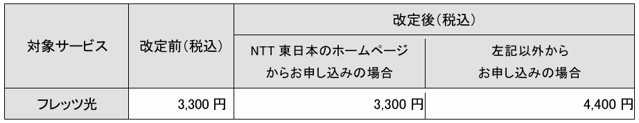 各種サービスに関わる「基本工事費」を改定します。代表的なサービスの工事費の例は以下の通りです。なお、各種サービスについてNTT東日本のホームページよりお申込みいただいた場合は、今回の改定の対象外といたします。