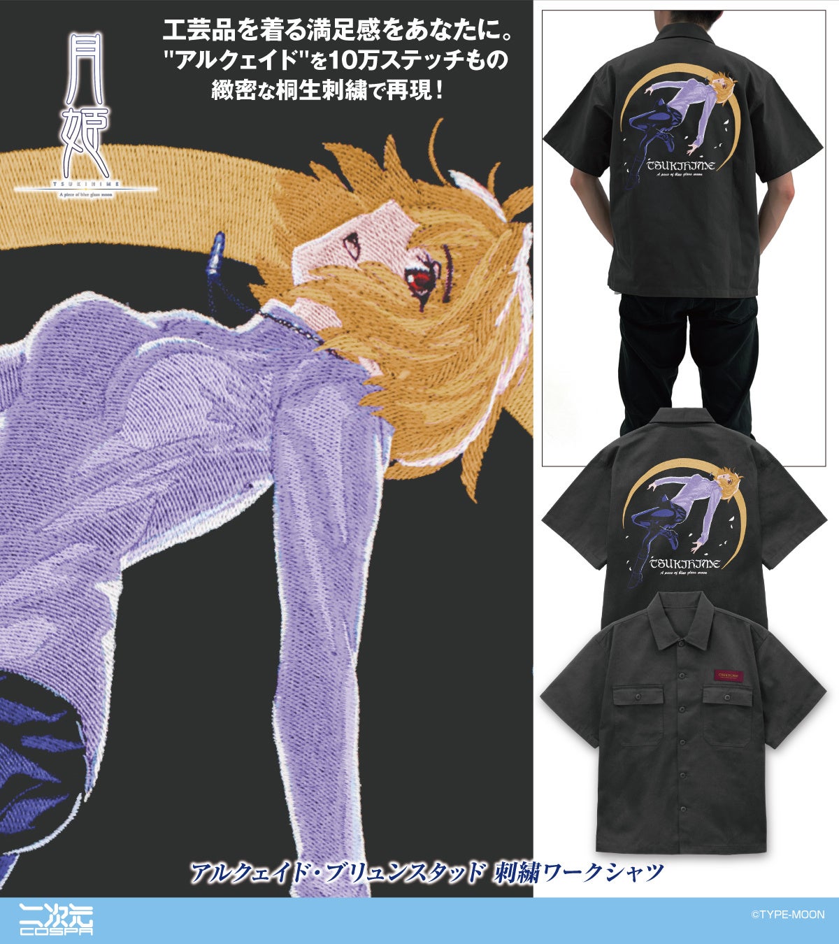 「アルクェイド」を緻密な刺繍で再現したワークシャツやフルグラフィックドライパーカー、
