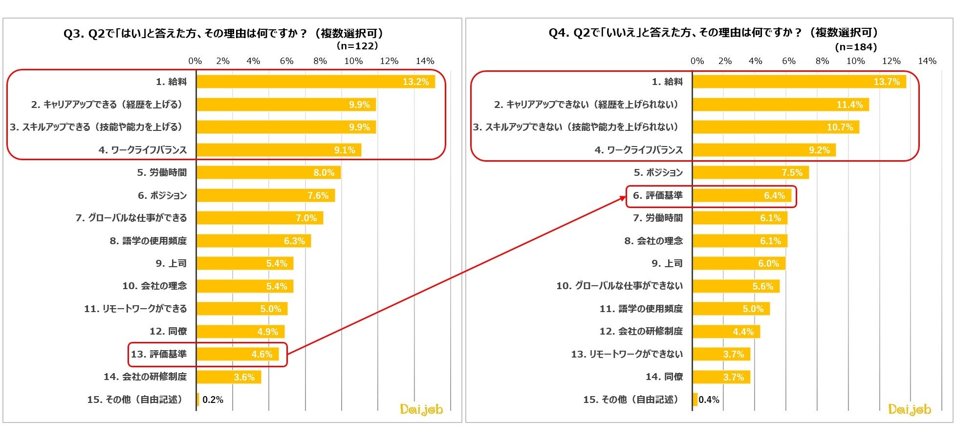 2.職場の「満足/不満足」の原因は、どちらの場合も「給料」「キャリアップ」「スキルアップ」「ワークライフバランス」の4つが上位