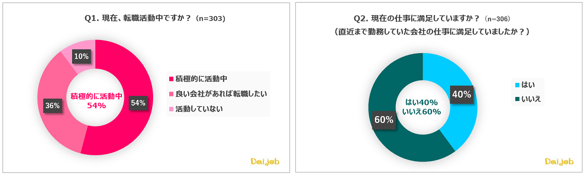 1.転職サイト登録者でも、現在の仕事に満足している割合は40%存在している