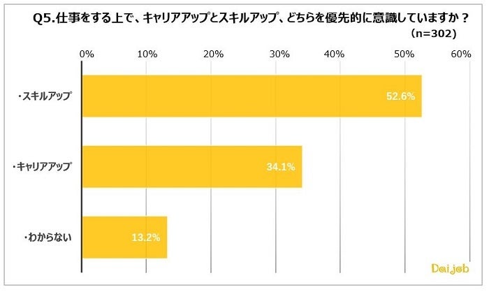 3.仕事をする上での優先度を、「スキルアップ」と「キャリアアップ」で比較すると、スキルアップの方が18.5%多い