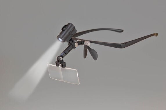 非球面レンズを使用したメガネ型ルーペ。LED付きとLEDなしをラインアップ。