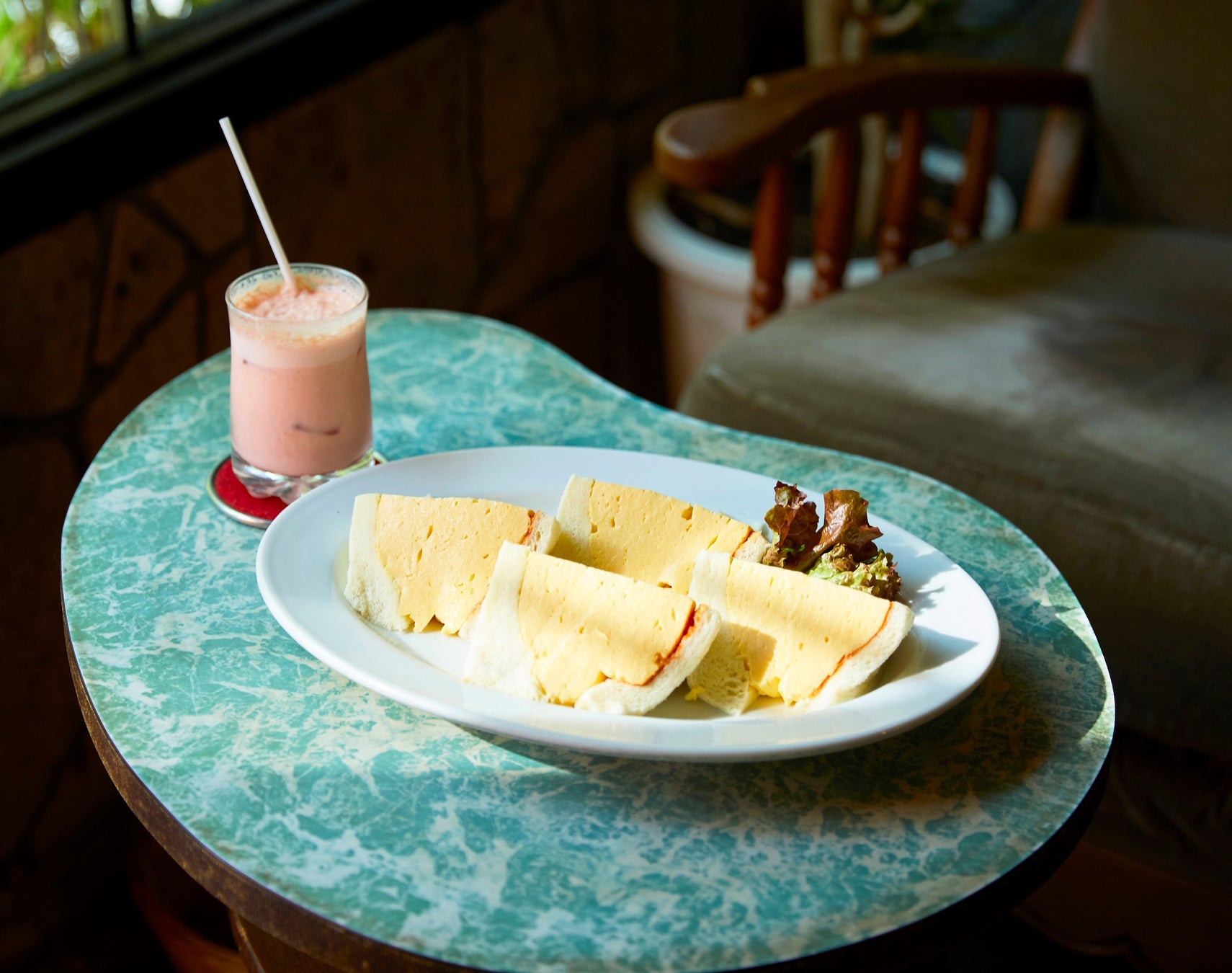 昭和38年から50年以上愛された「喫茶セブン」の建物や空間、看板までそのままに受け継ぐ「喫茶マドラグ」。マスターの山﨑三四郎裕宗さんが、自身も常連だった名店「コロナ」の玉子サンドや「グリルアローン」のオムライスなど、惜しまれつつ閉店したお店のメニューを復活させました。“コロナの玉子サンドイッチ”は、それぞれみんなが持つ思い出の味を越えるため何度も改良。卵は昆布だしで旨みを出し、牛乳も増やしてギリギリまでふわふわに。サイズも大きくして、パンには片方ずつデミグラスとマスタードを塗り、味の違いも楽しめます。