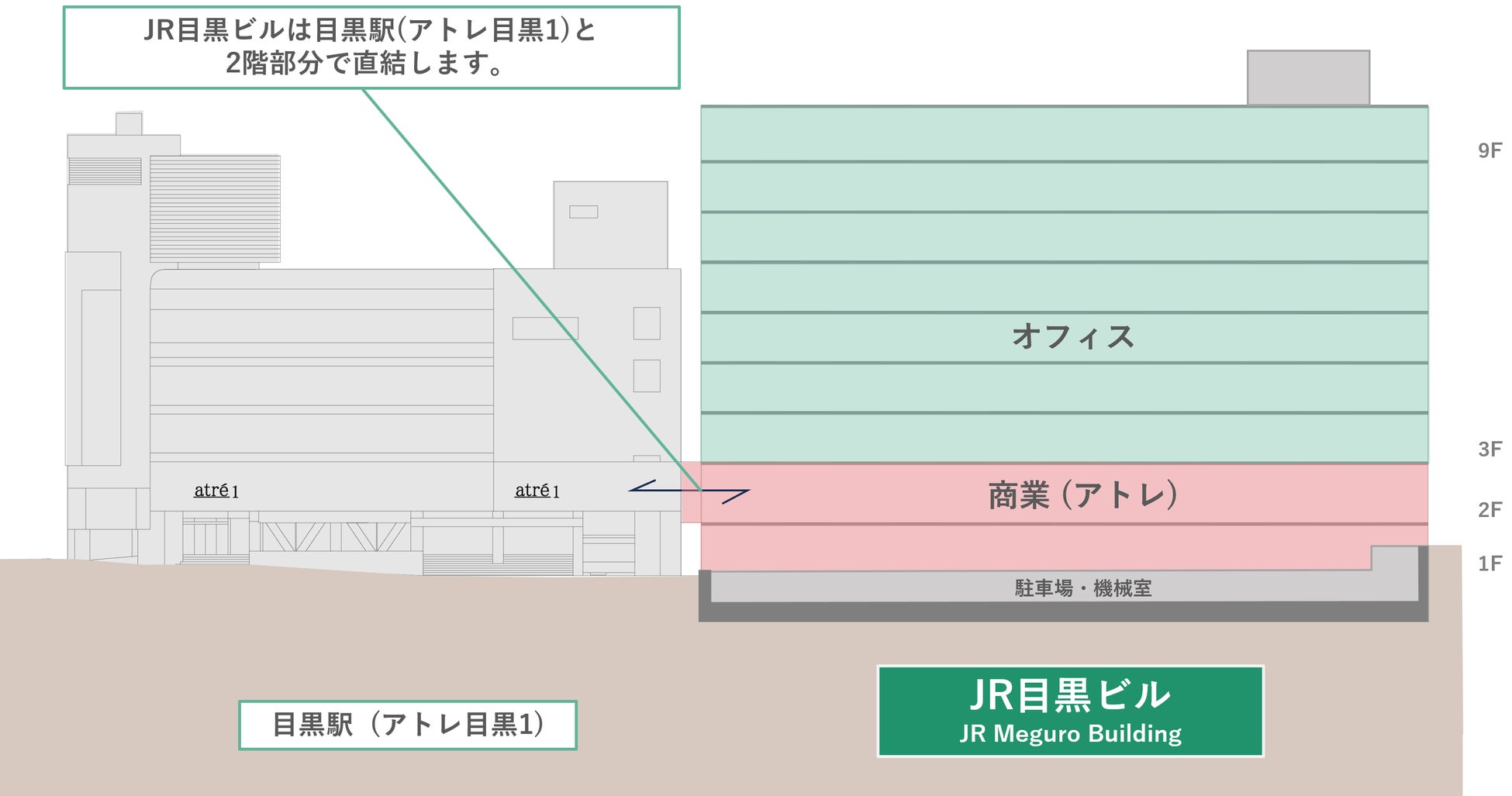 ・目黒駅コンコースより2階の連絡通路で直結した利便性の高いオフィス・商業施設の複合ビルです。