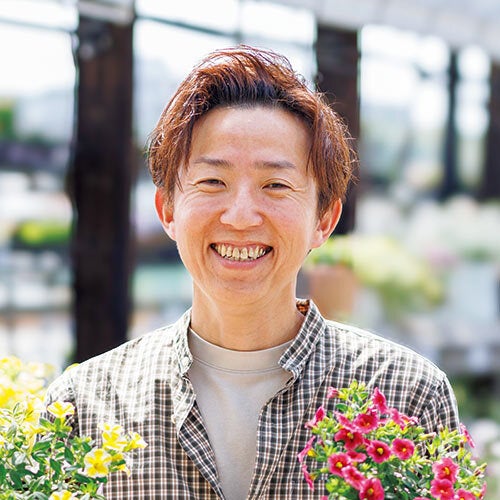 大阪府堺市の園芸店で店長を務める。店頭には上田さんが厳選した良質の苗が並び、見本の寄せ植えのファンも多い。長くきれいに楽しむ寄せ植えづくりのテクニックをテレビや講習会などでも伝えている。
