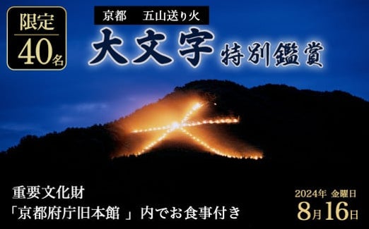◆お礼の品詳細:【限定40名様】ふるさと納税限定 「京都五山送り火」の特別鑑賞と重要文化財内で楽しむ食事体験(1名様分)