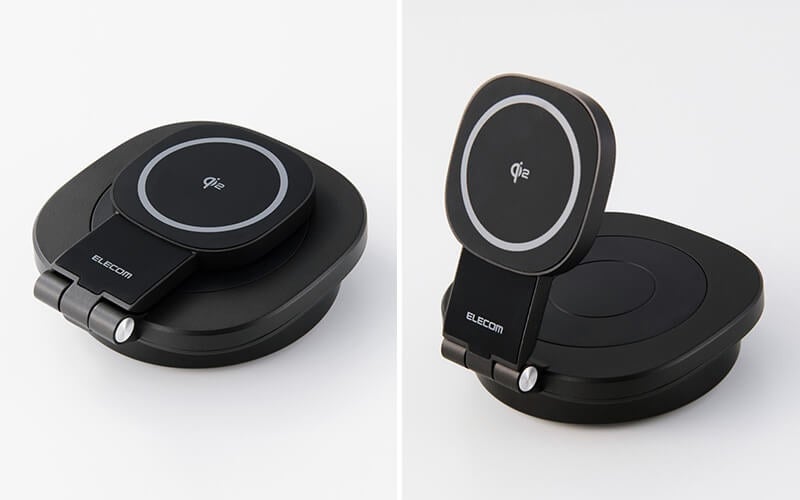 Qi2対応スマートフォンは、スタンドにマグネットで固定するだけで、最大出力15Wのワイヤレス充電ができます。ケーブルの抜き挿しが不要なため、席を立つ際もスムーズに利用できます。