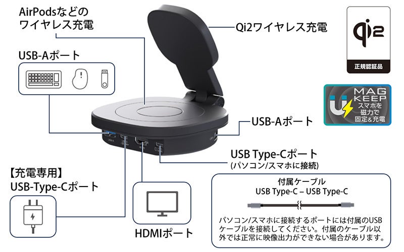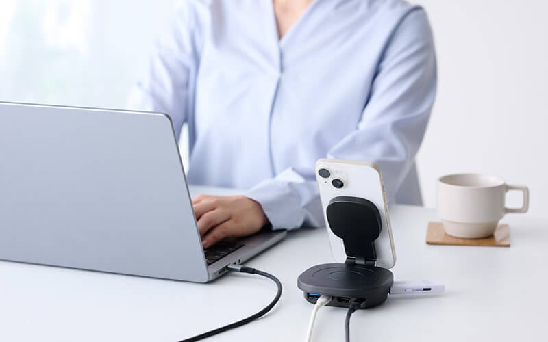 スマホ・AirPods・パソコンを充電しながら映像出力やUSB機器の拡張もできる!Qi2対応4in1ドッキングステーションを新発売