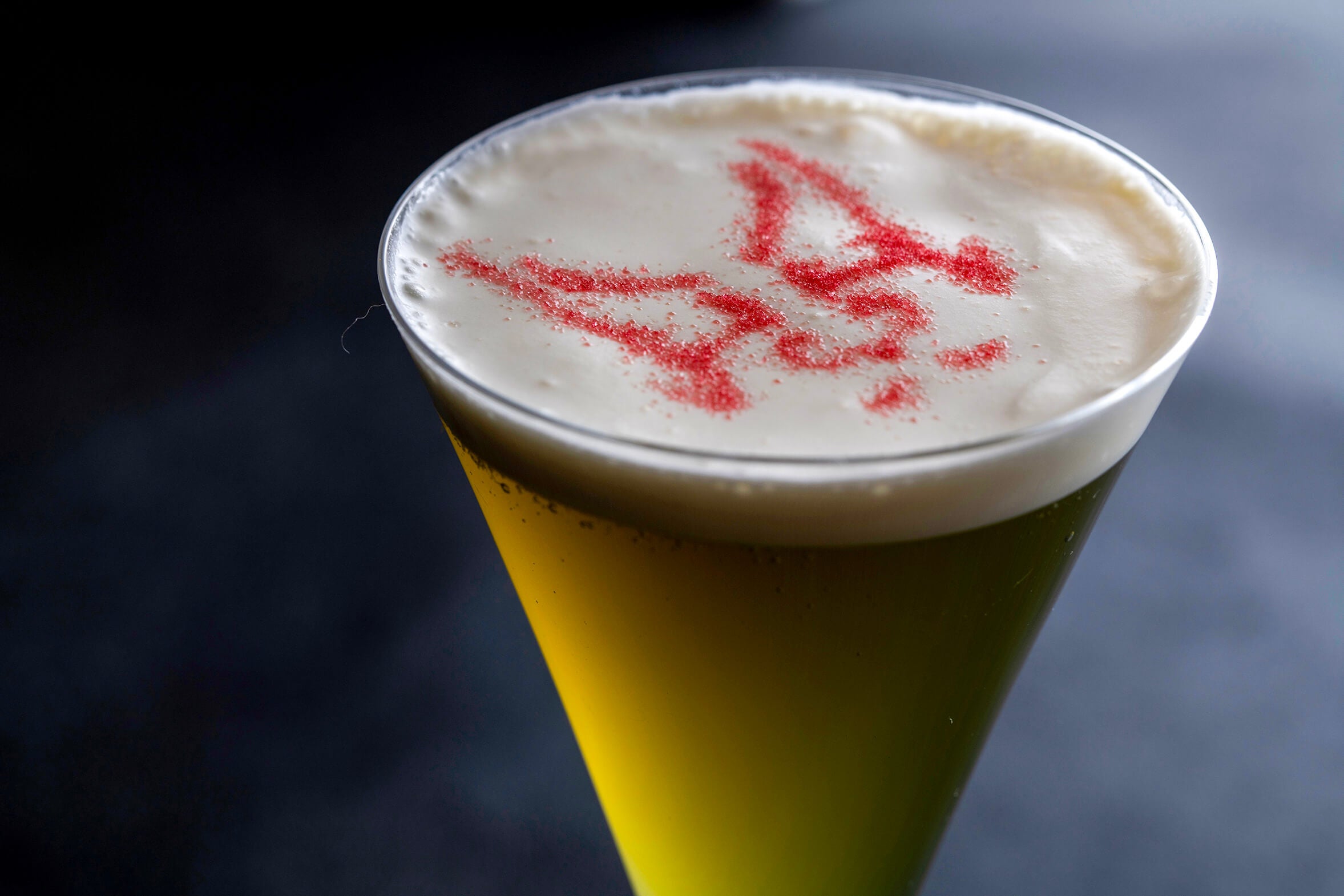 日本の伝統芸能「歌舞伎」をイメージした和風のカクテル。香り高い抹茶にフレッシュクリームを浮かべ、ラズベリーパウダーで隈取をあしらいました。デザートカクテルとしてもおすすめです。