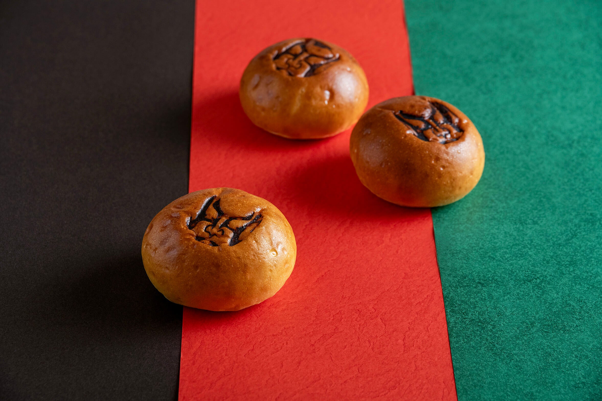 ソフトに焼き上げたバターロール生地と北海道十勝産のこしあんのあんぱんに、隈取の焼き印を押しました。焼き目の香ばしい風味が、優しいあんぱんの味わいを引き立てます。