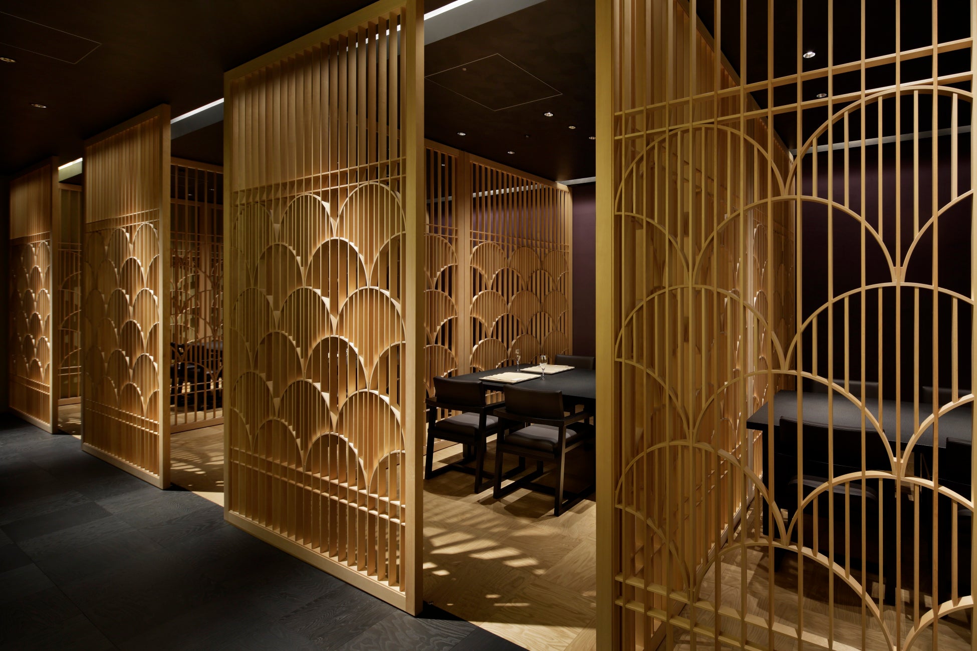 日本の伝統様式を重んじながら、現代に合わせて進化する日本旅館「星のや東京」。その地下一階にあるダイニングでは、地層をイメージした左官仕上げの壁と大きな岩が迎え入れます。エントランスを抜けると、6室の畳敷きの個室、4つのテーブル席があります。和の静けさが漂う落ち着いた日本旅館の空間で、滞在着のまま肩肘張らずに食事が楽しめます。