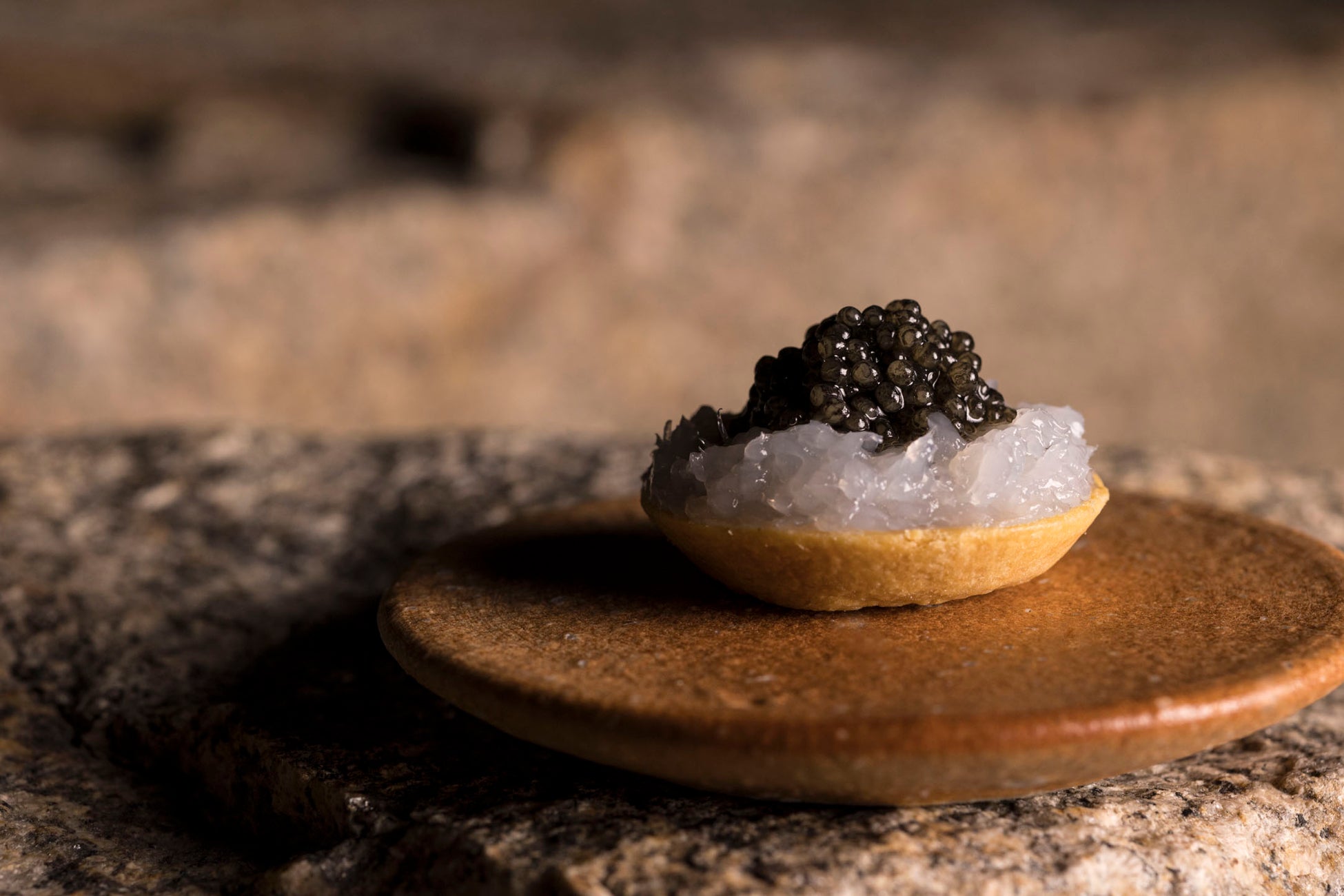 噛むほどに広がるアオリイカの甘味と、濃厚で上質なキャビアの塩味が織りなす、特別なアペリティフです。アオリイカの甘さを引き立てるカリフラワーの繊細な味わいと、身欠きニシン(*1)の干し過程で引き出される深みのある風味が、味わいに奥行きを生み出します。キャビアを贅沢にのせた一皿が、食事の始まりを華やかに彩ります。
