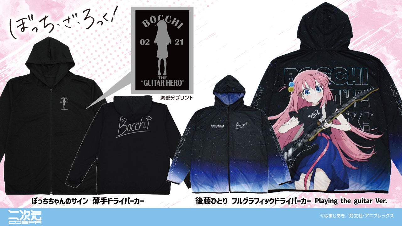 アニメ「ぼっち・ざ・ろっく!」より、限定品【期間限定商品】の「後藤ひとり 刺繍ワークシャツ Playing the guitar Ver. 2025MODEL」をはじめ、「フルグラフィックドライパーカー」や結束バンド4人の「フルグラフィックTシャツ」など新グッズが二次元コスパから登場です。