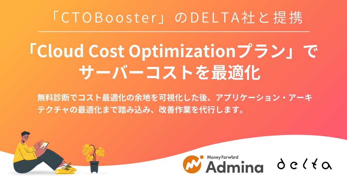 『マネーフォワード Admina』は、成功報酬型サーバーコスト削減サービス「CTO Booster」を運営する株式会社DELTA(本社:東京都渋谷区、代表:丹 哲郎 以下、DELTA)と共同で、サーバーコストの最適化を行う「Cloud Cost Optimizationプラン」の提供を開始します。