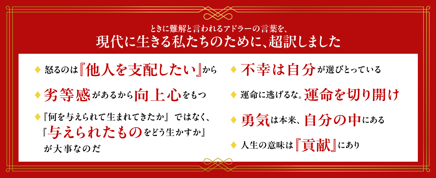 その人気のアドラーが、満を持して偉人・名著の超訳文庫シリーズに登場です。