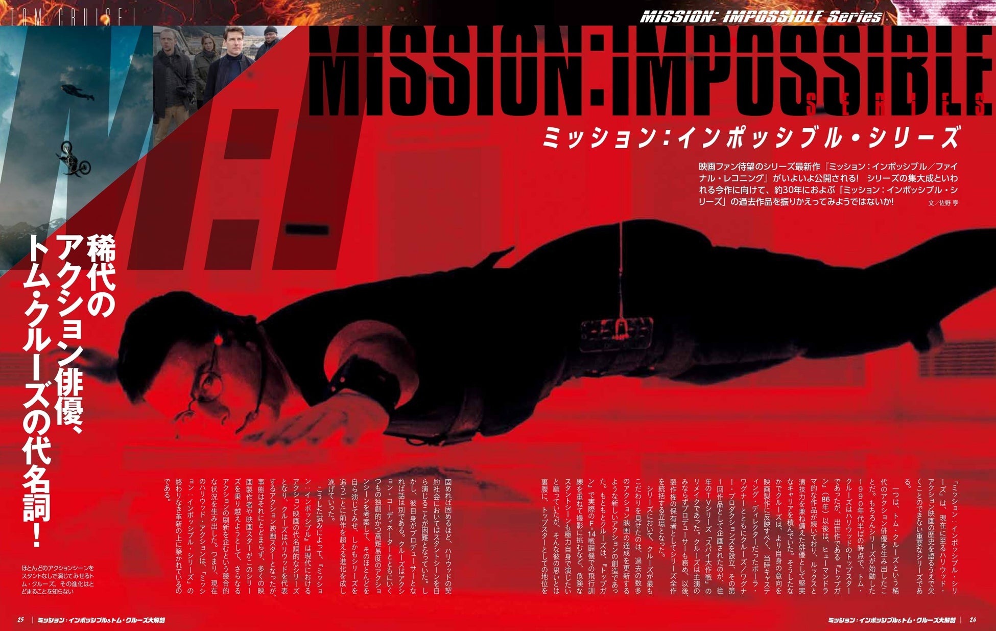 本誌では「ミッション:インポッシブル・シリーズ」を徹底解剖するとともにトム・クルーズの映画人生に迫る1冊となります。