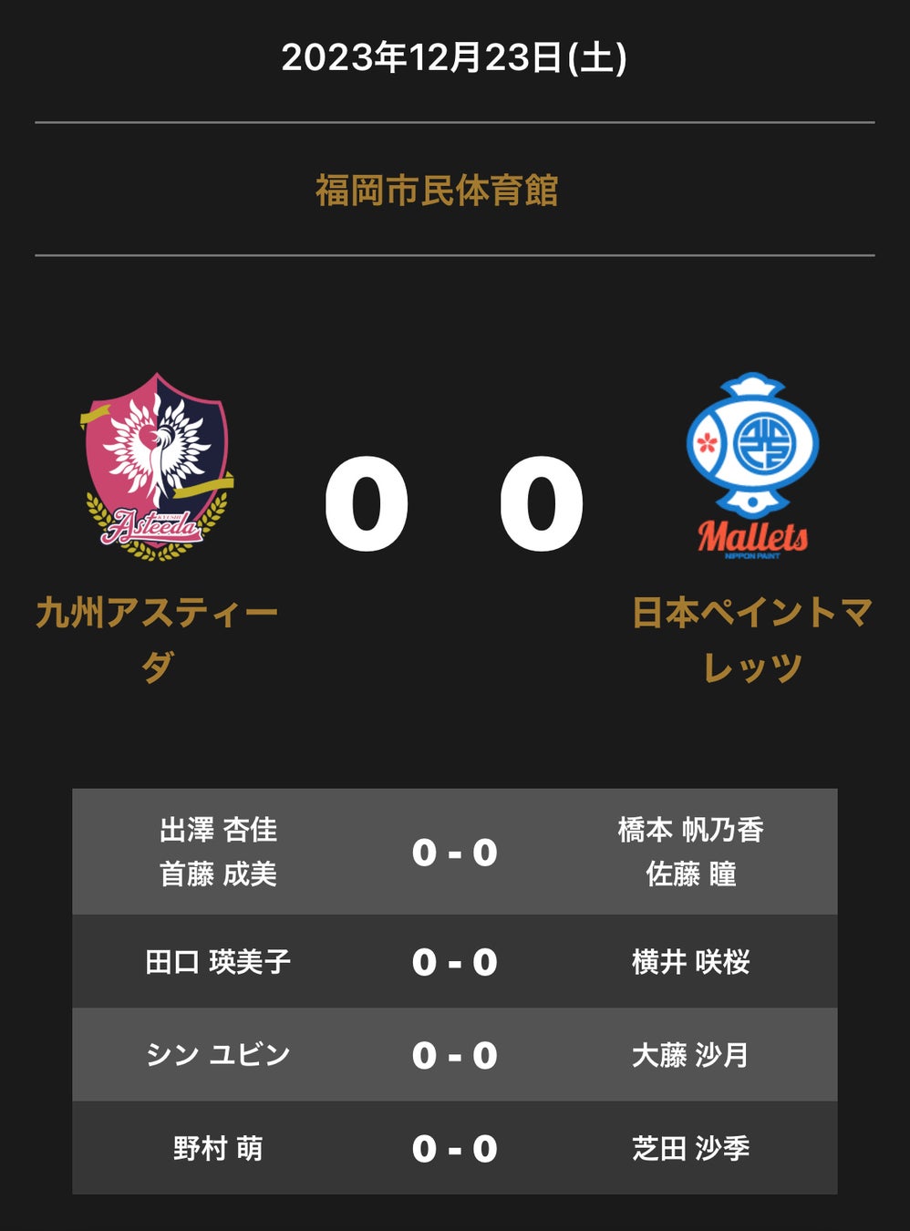 ノジマTリーグ 2023-2024シーズン 公式戦 12月23日開催 九州アスティーダ vs 日本ペイントマレッツ 対戦オーダー発表