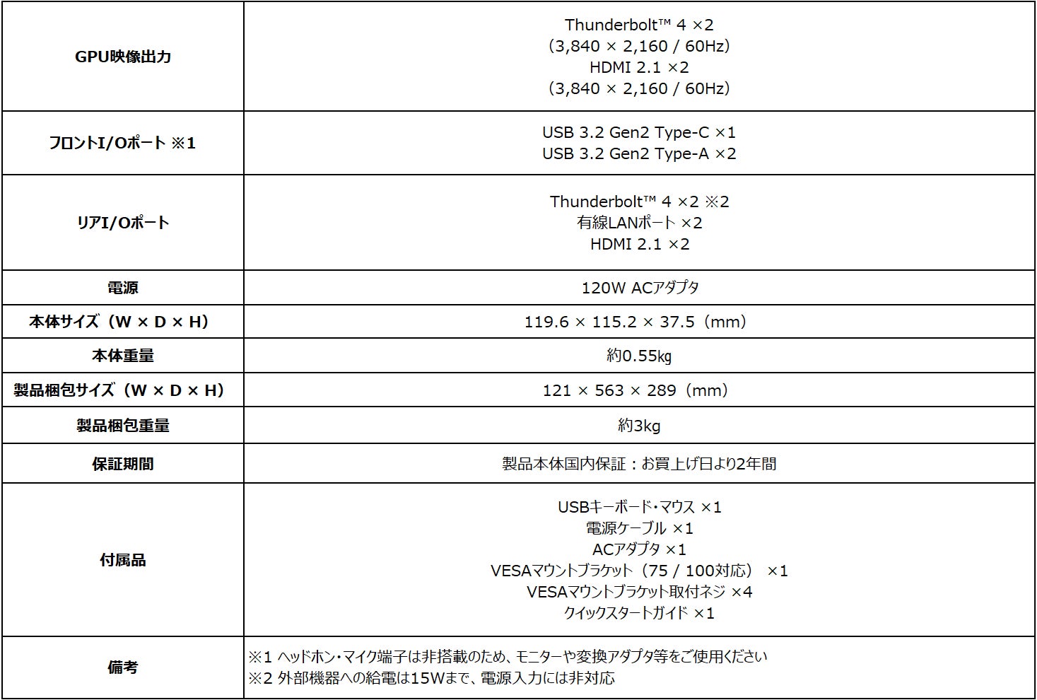 Thunderbolt™ 4 ×2、HDMI ×2により、最大4画面の同時出力が可能。マルチタスクやデジタルサイネージにも最適