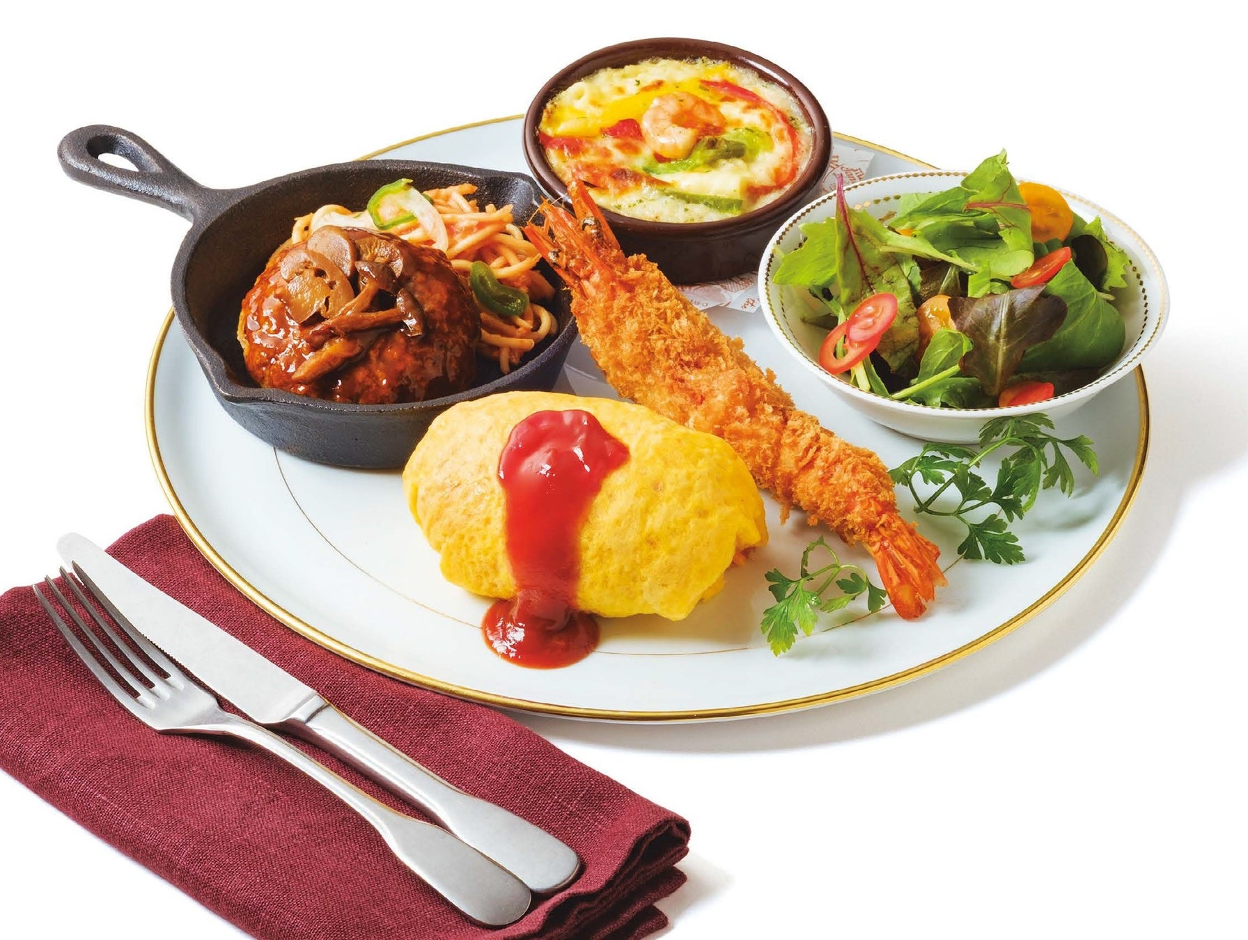 懐かしの「お子さまランチ」の定番オムライス、ハンバーグ、ナポリタンなど人気のメニューをワンプレートで楽しめる、大人のためのお子さまランチセットです。