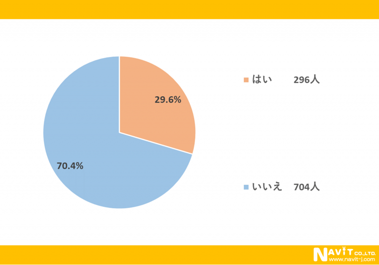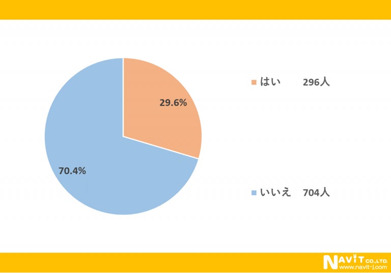 「台所の洗い物は好きですか?」という質問については、「はい」が29.6%、「いいえ」が70.4%という結果になり、7割以上の人が洗い物好きではないことが分かりました。