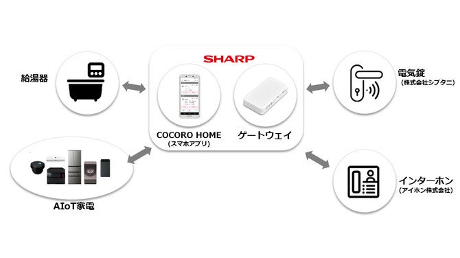 シャープは、当社が提供するスマートホームアプリ「COCORO HOME」と新開発のスマートホームゲートウェイを活用したデベロッパー向けの新「スマートホームソリューション」を開発しました。インターホンや電気錠、家電製品など複数メーカーの「ECHONET Lite」対応IoT機器を連携させることで、特別な工事が不要で宅内全体の機器連動や一括での省電力制御を実現します。
