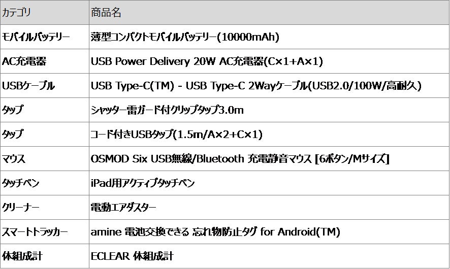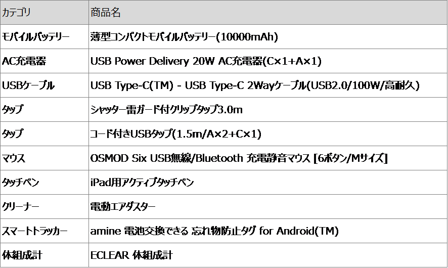 <セール製品一覧(一部抜粋)>