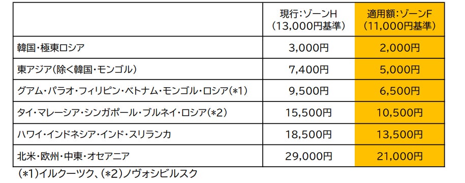 1)2025年8月1日(金)から9月30日(火)までの発券分については、今後の航空燃油価格の水準にかかわらず、上記適用額からの変更は原則行いません。