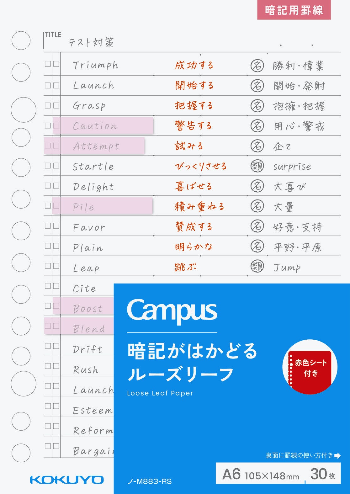 ・キャンパス 暗記がはかどるルーズリーフ A6サイズ 310円