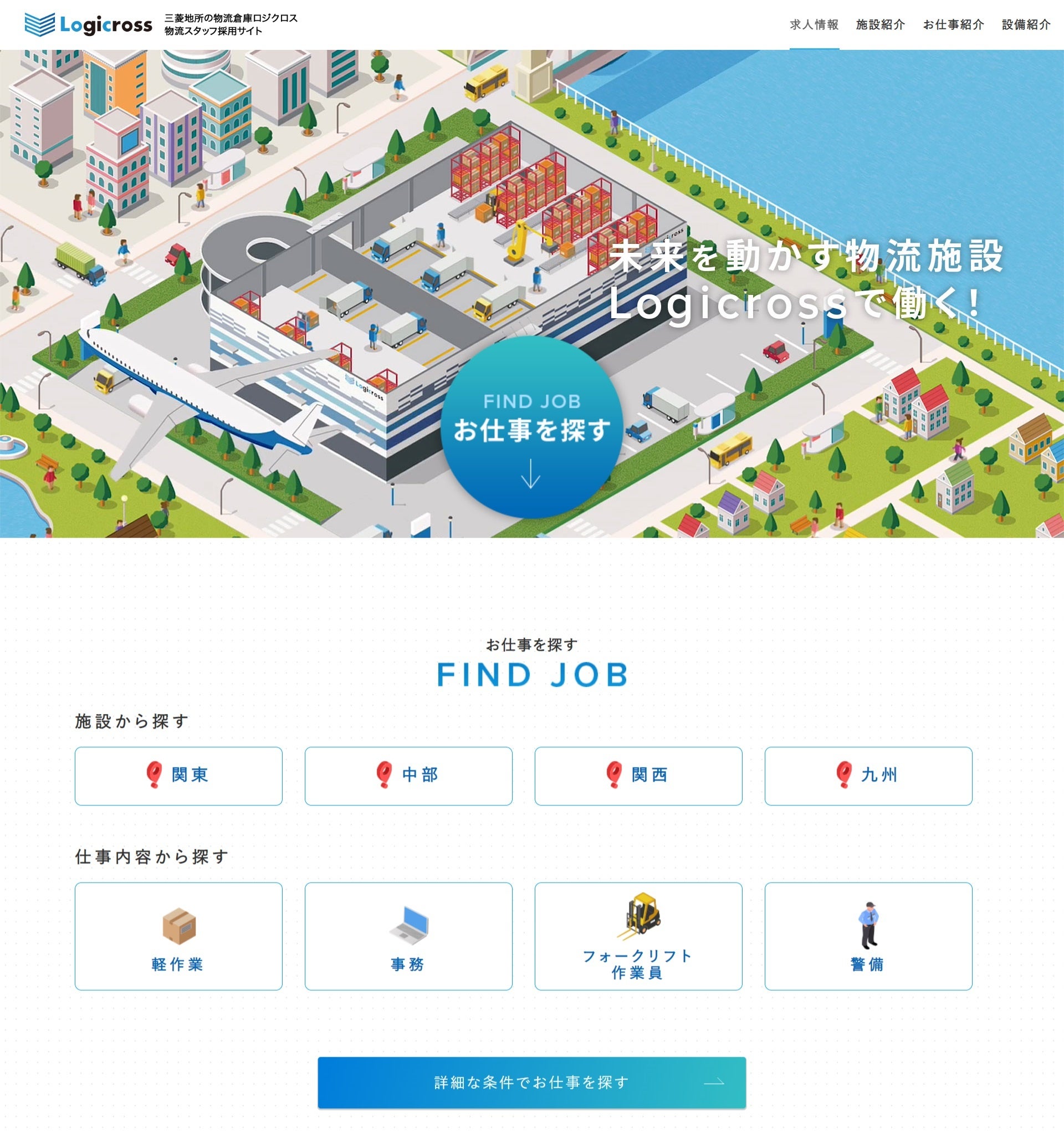 物流施設「ロジクロス」を展開する三菱地所株式会社では、物流が社会インフラとして重要性を増している中で人材不足を課題の一つと捉えており、その解消を目的として、アイデムが施設専用スタッフ募集サイトの構築・運用を受託しました。
