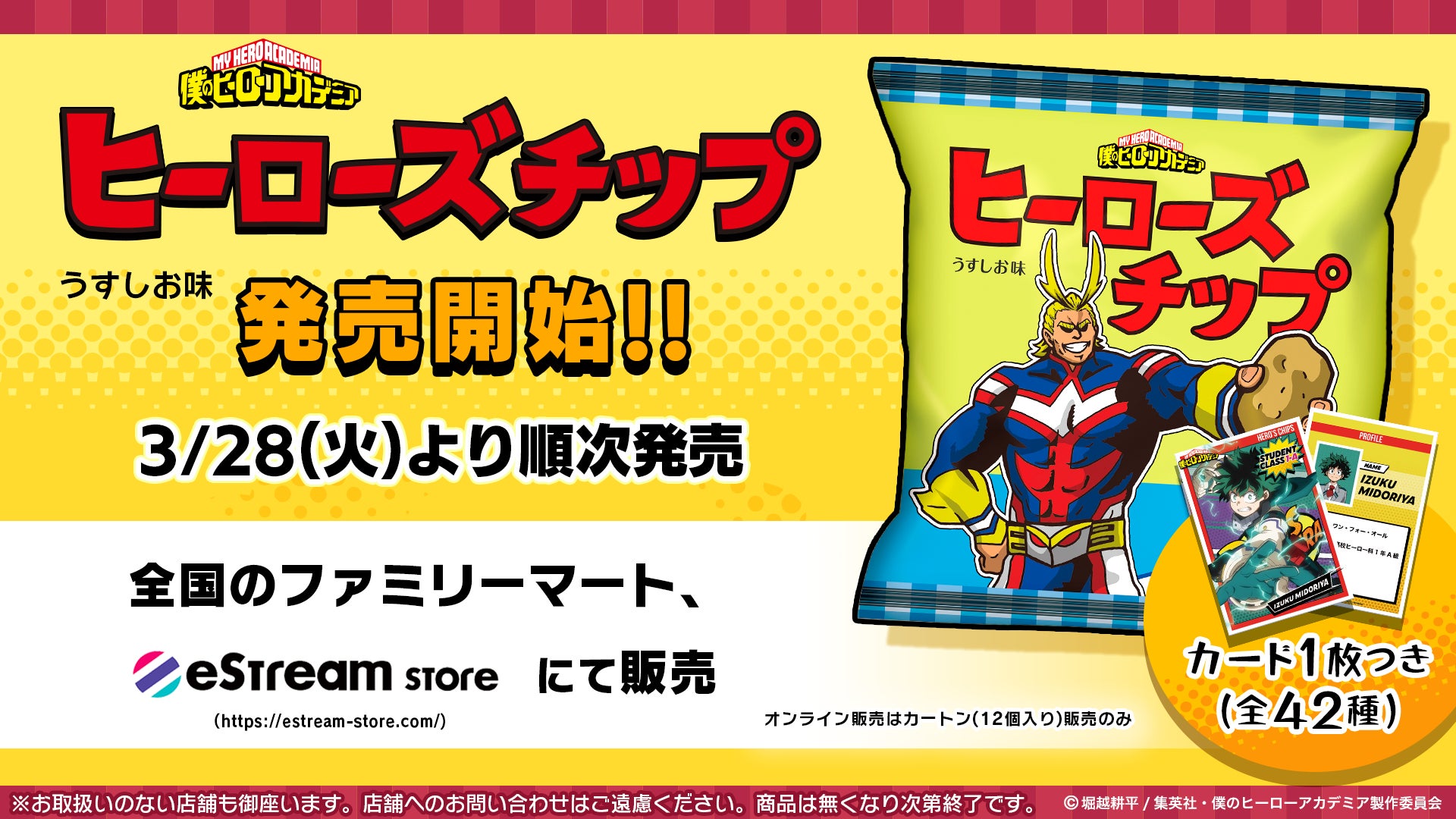 eStream、TVアニメ『僕のヒーローアカデミア』より「ヒーローズチップ」を3月28日(火)より全国のファミリーマート店舗、eStream Storeにて順次販売開始!