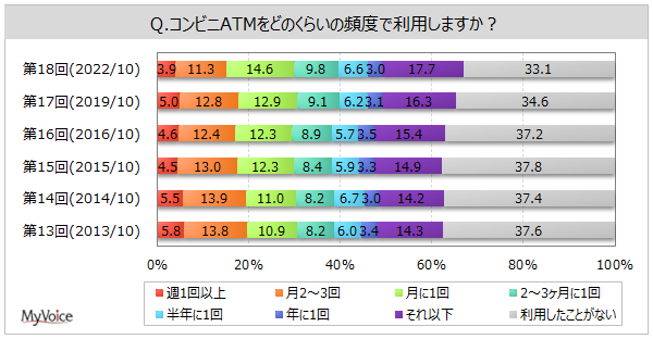 マイボイスコム株式会社(東京都千代田区、代表取締役社長:高井和久)は、18回目となる『コンビニATMの利用』に関するインターネット調査を2022年10月1日~5日に実施しました。調査結果をお知らせします。