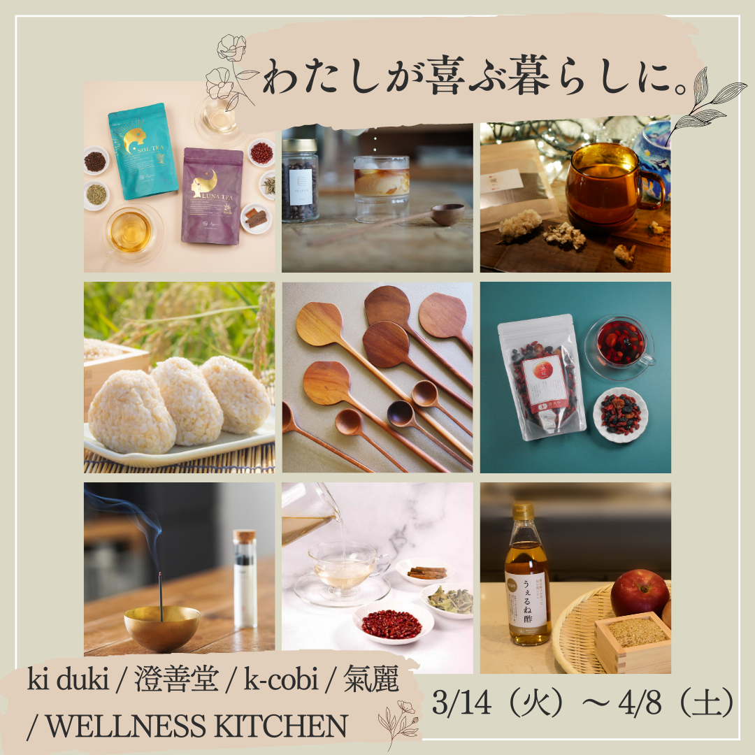 <ki duki (キヅキ) / 澄善堂 / 氣麗 / WELLNESS KITCHEN (ウェルネスキッチン) / k-cobi (ケーコービ)>