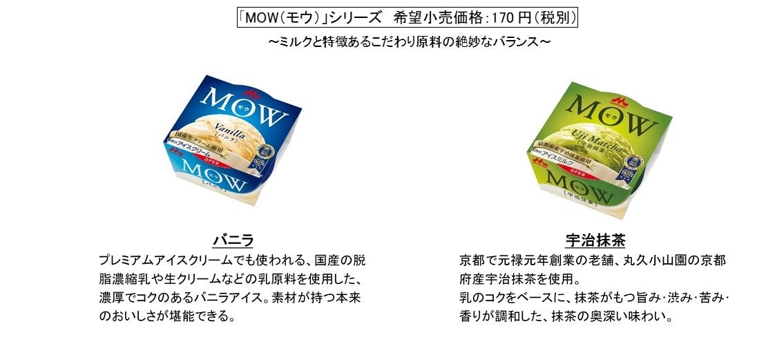 ①「MOW(モウ)」の特長である“ラベルクリーン処方※2”と“低温急速凍結製法”という原料や製法へのこだわりはそのままに、日常の“ちょっと贅沢なスイーツタイム”を楽しみたい方に向けたシリーズです。