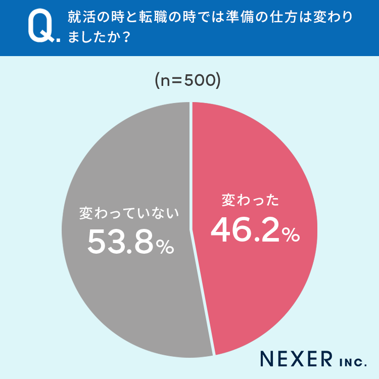 また、就活の時と転職の時では準備の仕方は変わったか聞いてみました。