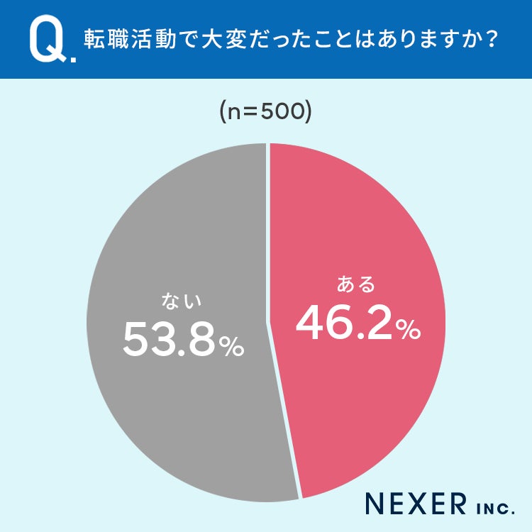 46.2%と半数近くの方が、転職活動で大変だったことが「ある」と回答しています。
