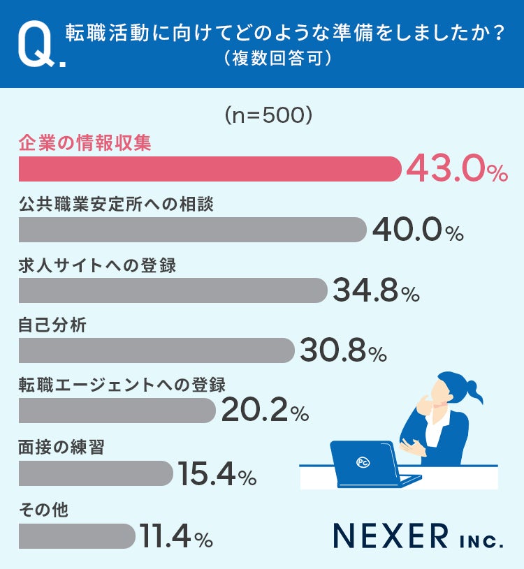 【転職経験者500人に調査】転職活動の準備、もっとも多いのは43%で「企業の情報収集」
