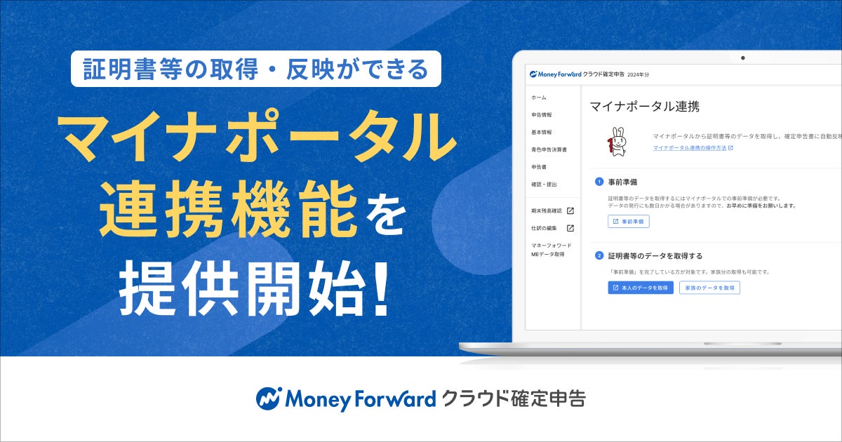『マネーフォワード クラウド確定申告』、マイナポータルとの連携により証明書の自動取得・反映が可能に