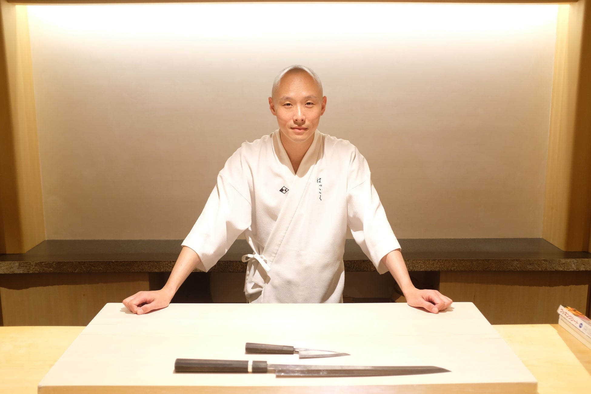 1978年、東京都生まれ。グローバルダイニングが展開する「ZEST 恵比寿店」でウェイターとしてこの世界に入る。ゲストを楽しませることに喜びを感じていたが、日本でのサービスマンの仕事に限界を感じ、実家が鮨店だったこともあり、鮨職人の道へ。25歳から6年間、神泉【秋月】で修業。2013年3月、銀座【鮨とかみ】で大将を務めると、マグロを極め、独自の赤酢のシャリで瞬く間に話題店となる。2018年、「はっこく」をオープン。世界中のセレブリティ・トップアーティストを顧客にもち、連日満席を記録する。