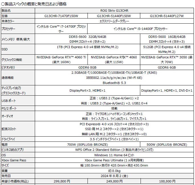 第14世代 インテル® Core™ プロセッサーを搭載し、ハイパフォーマンスを実現するゲーミングデスクトップPC「ROG Strix G13CHR」を発表
